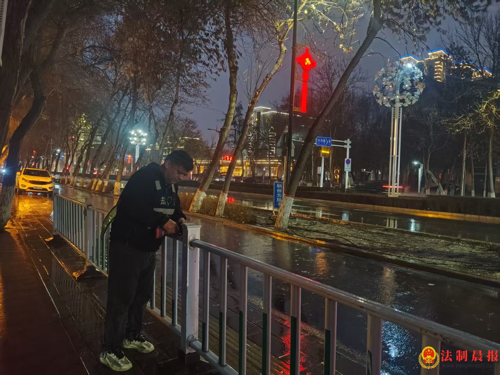 3月24日,石河子市迎来今春第一场降雨。当晚,北四路(西环路至西小路段)和西环路(北一路至北二路段)上演了暖心一幕:城管局市政工程养护中心的交通设施维护人员冒着春雨,连夜抢修近40米倒伏的交通护栏,及时消除了道路安全隐患。